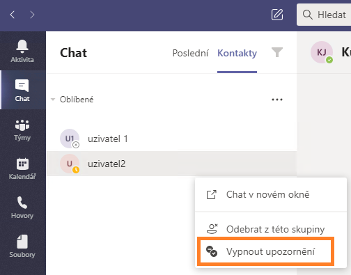 Nezapomeňte vypnout upozorňování, jakmile potřeba na informace o online stavu daného uživatele pomine. Jinak budete dostávat upozornění pokaždé, když se daný uživatel přihlásí do MS Teams.